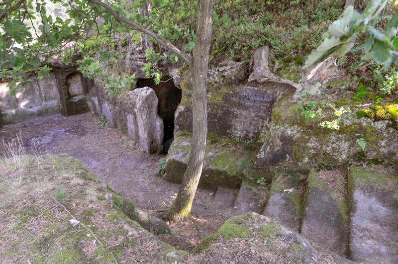 Schodiště vysekané do skály, vlevo od něj kruhovou místnost – někdejší strážnici, vpravo výklenky na obrázky křížové cesty.