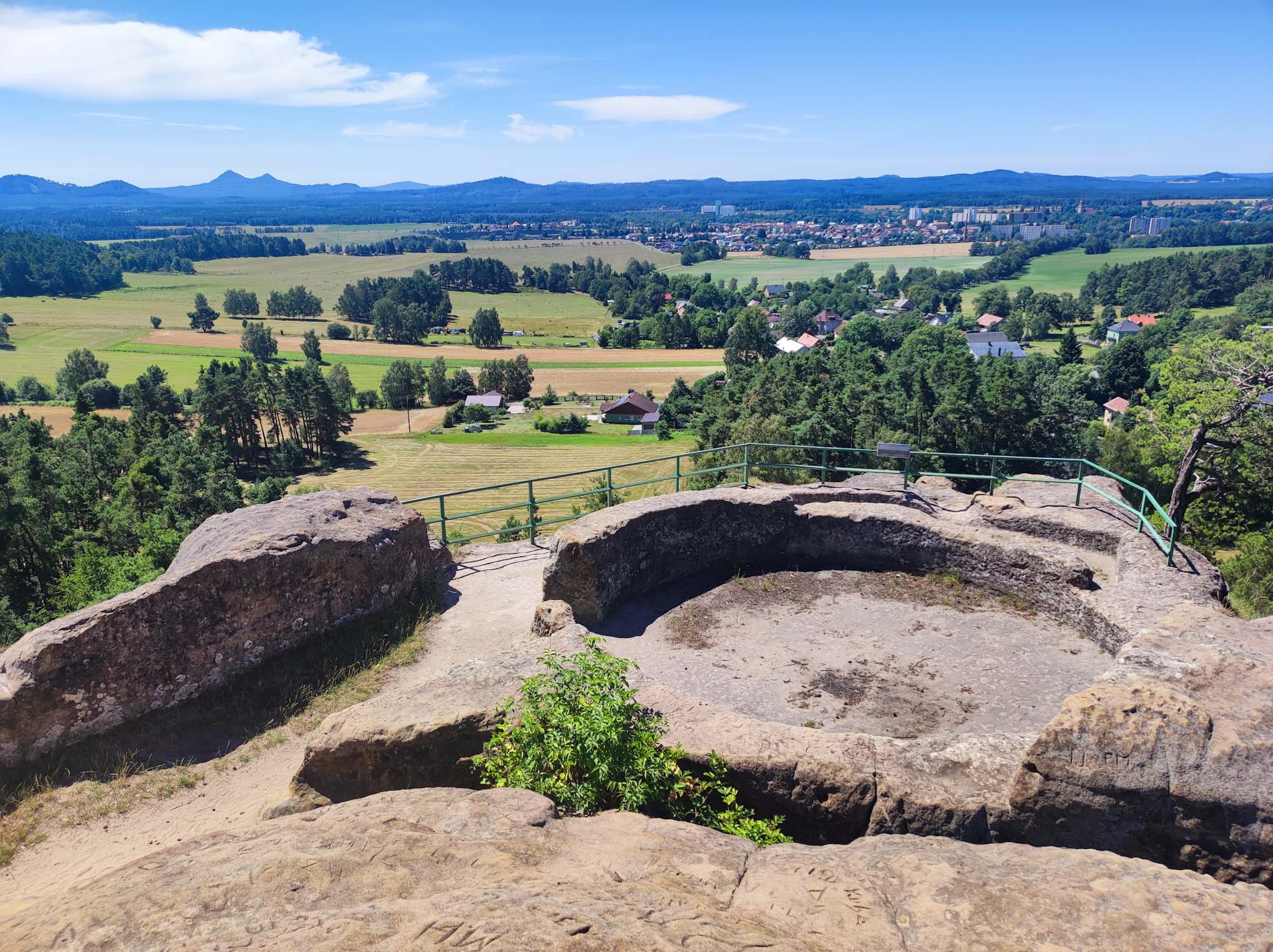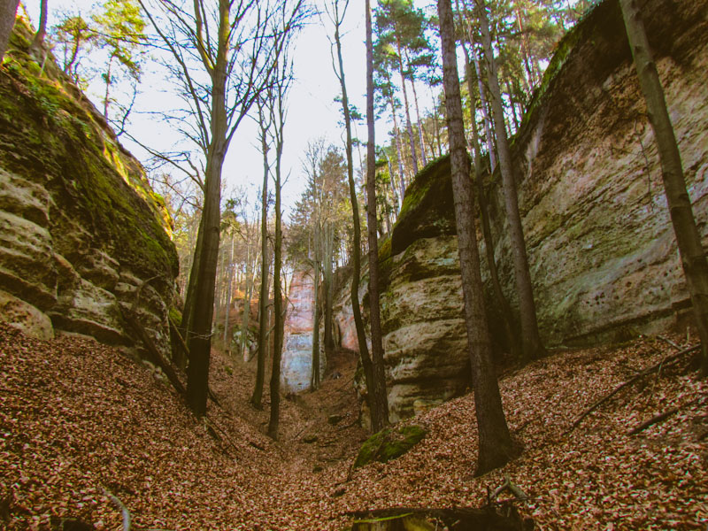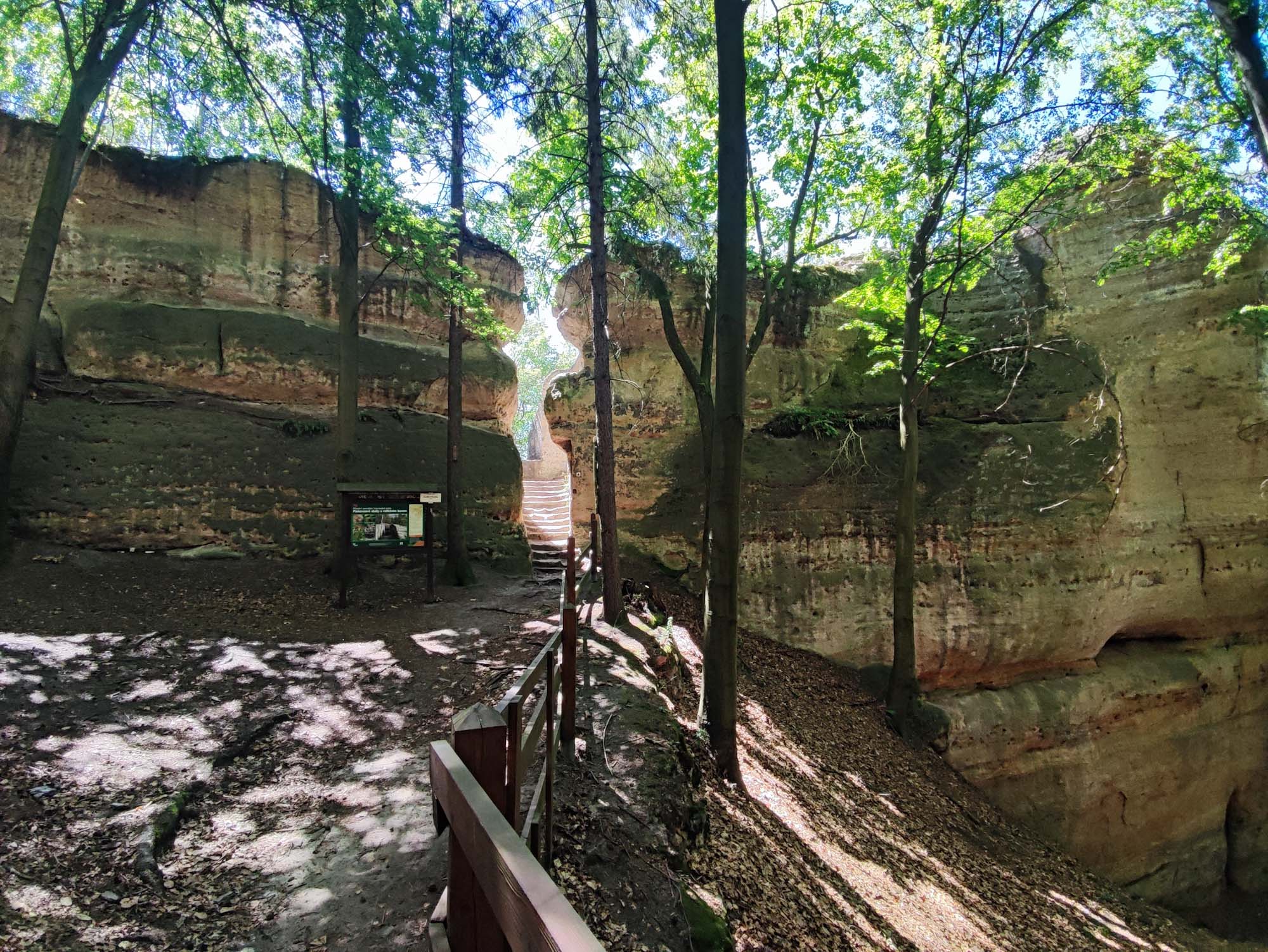 Menší pískovcové skalní město se zajímavými útvary v podobě skalních oken a hřibů.