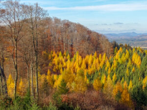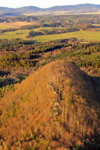 Vulkanický vrchol porostlý starými buky září barvami především na podzim.