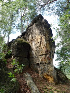 Výrazný vrchol vzniklý na vulkanické žíle. Zbytky po středověkém hrádku, dobývky železné rudy, pískovcové lomy.