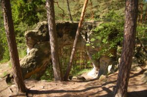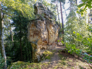Menší pískovcové skalní město se zajímavými útvary v podobě skalních oken a hřibů.