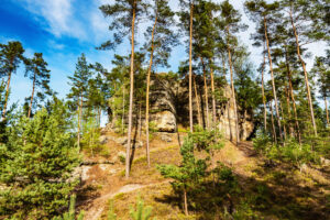 Menší pískovcové skalní město se zajímavými útvary v podobě skalních oken a hřibů.