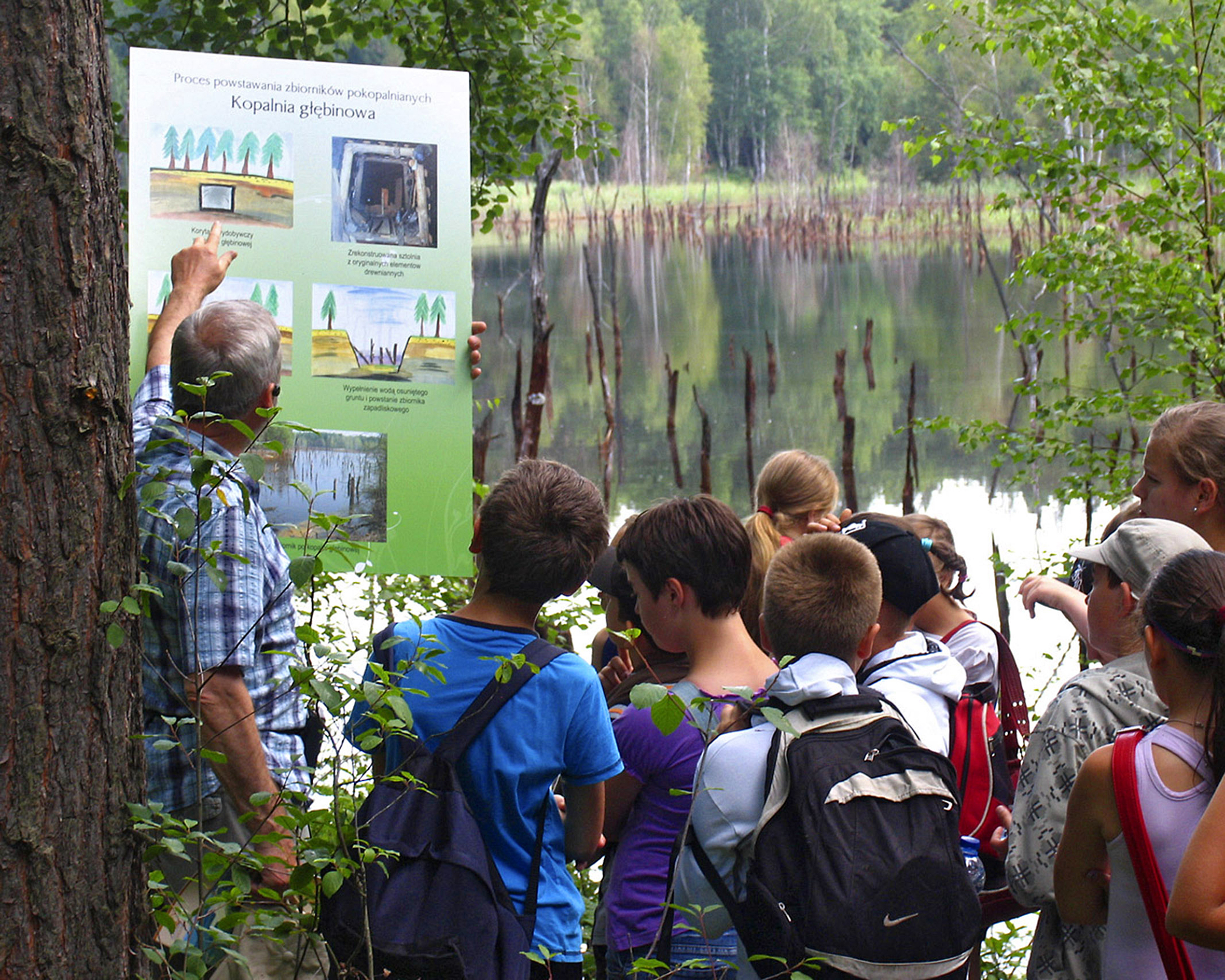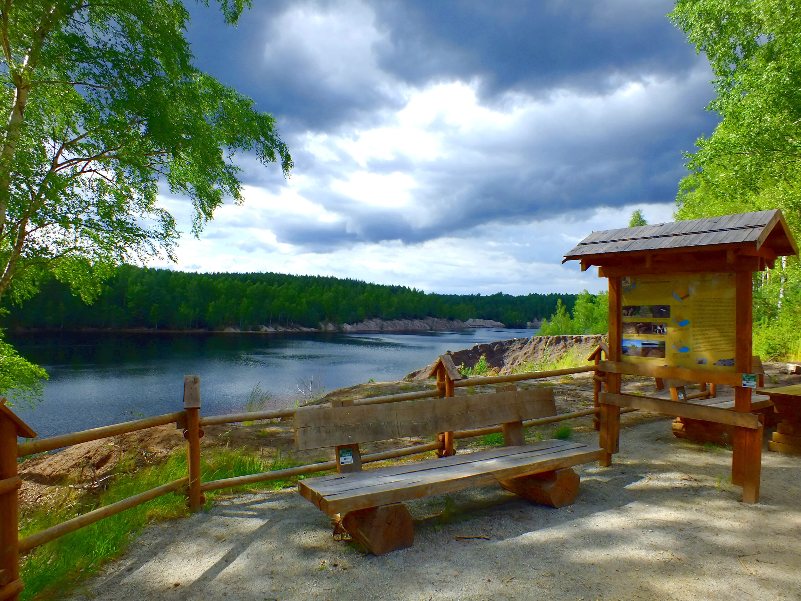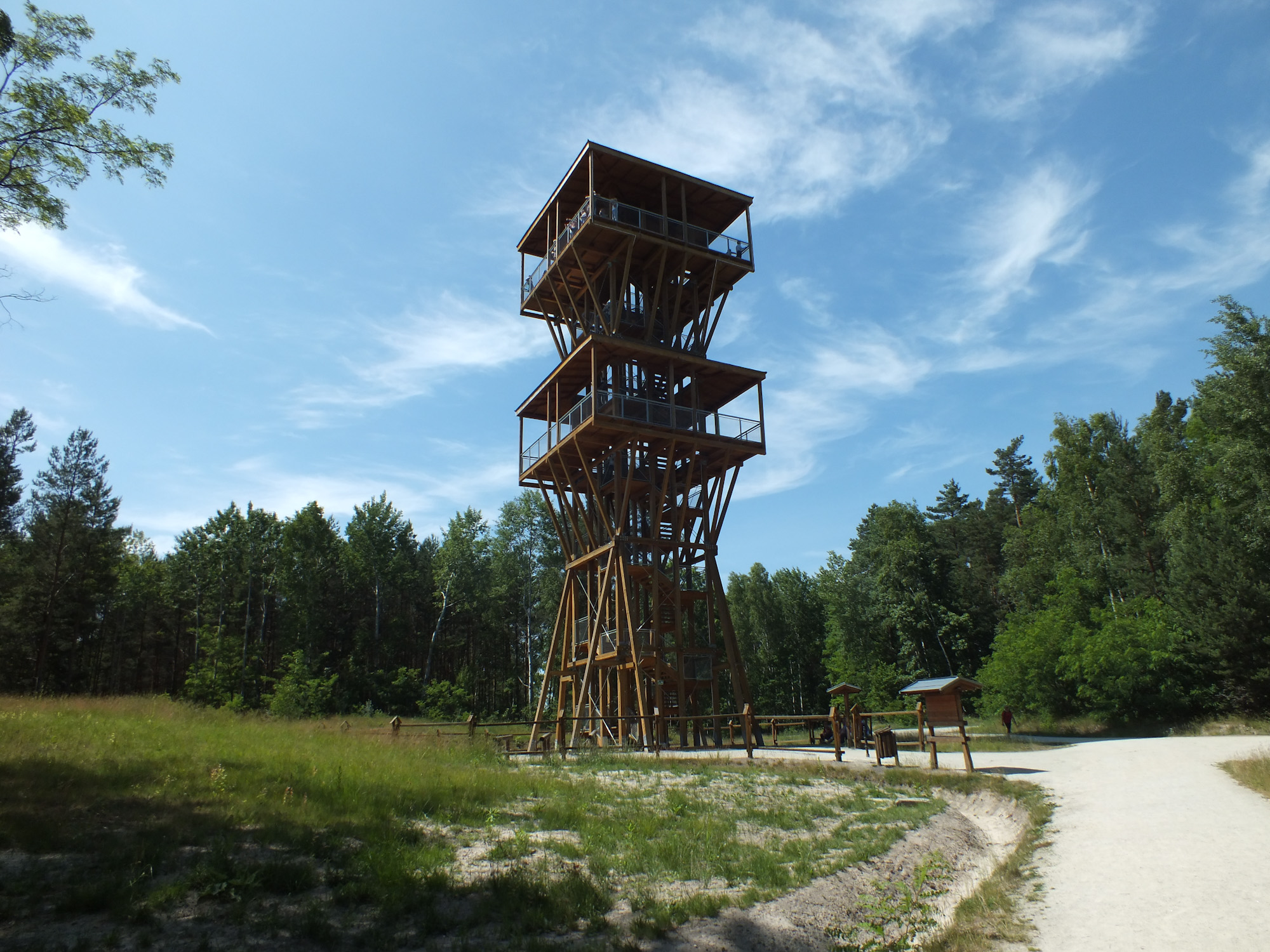 Středem geoturistické stezky je rozhledna přímo na břehu jezera Afrika. Afrika je jezero na místě bývalé dobývky C a dostalo pojmenování podle svého tvaru, který připomíná zmíněný světadíl. Je to největší vodní plocha v Geoparku Muskauer Faltenbogen, má 20 hektarů. V nejdelším místě má 896m a v nejširším 468m. Pokud bychom chtěli obejít celou Afriku, museli bychom ujít 2 625 metrů. Hloubka kolem 9,7 metrů, nejhlubší místo má 24 metrů.