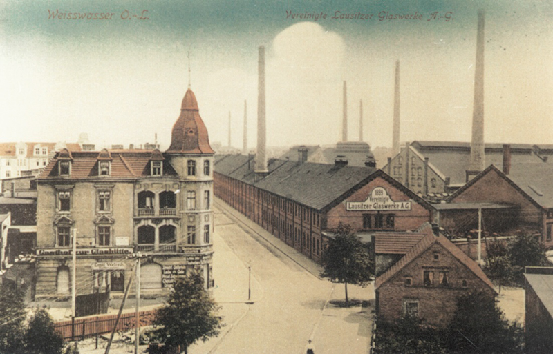 Sklářská tradice Weißwasser/O.L. byla založena v letech 1872/73 výstavbou první sklárny a jejím uvedením do výroby. Rozhodujícím faktorem byla přítomnost vysoce kvalitních surovin v Mužakovském vrásovém oblouku a šťastná okolnost výstavby železniční trati Berlín– Görlitz, která z iniciativy mužakovského panství vedla přes Weißwasser.