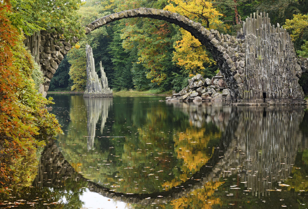V jižní části geoparku se nachází další klenot, azalkový a rododendronový park Kromlau. Tento park je však malebný nejen během období květenství v květnu a červnu, kdy tisíce keřů současně prezentují svou krásu. Zámek a kavalírský dům, stinná údolí a vznešené majestátní stromy, mosty a lávky, a především most u Rakotzsee s čedičovými sloupy tvoří přímo filmové kulisy po celý rok. Rododendronům a azalkám se ve vlhkém prostředí vrásového oblouku obzvláště dobře daří.